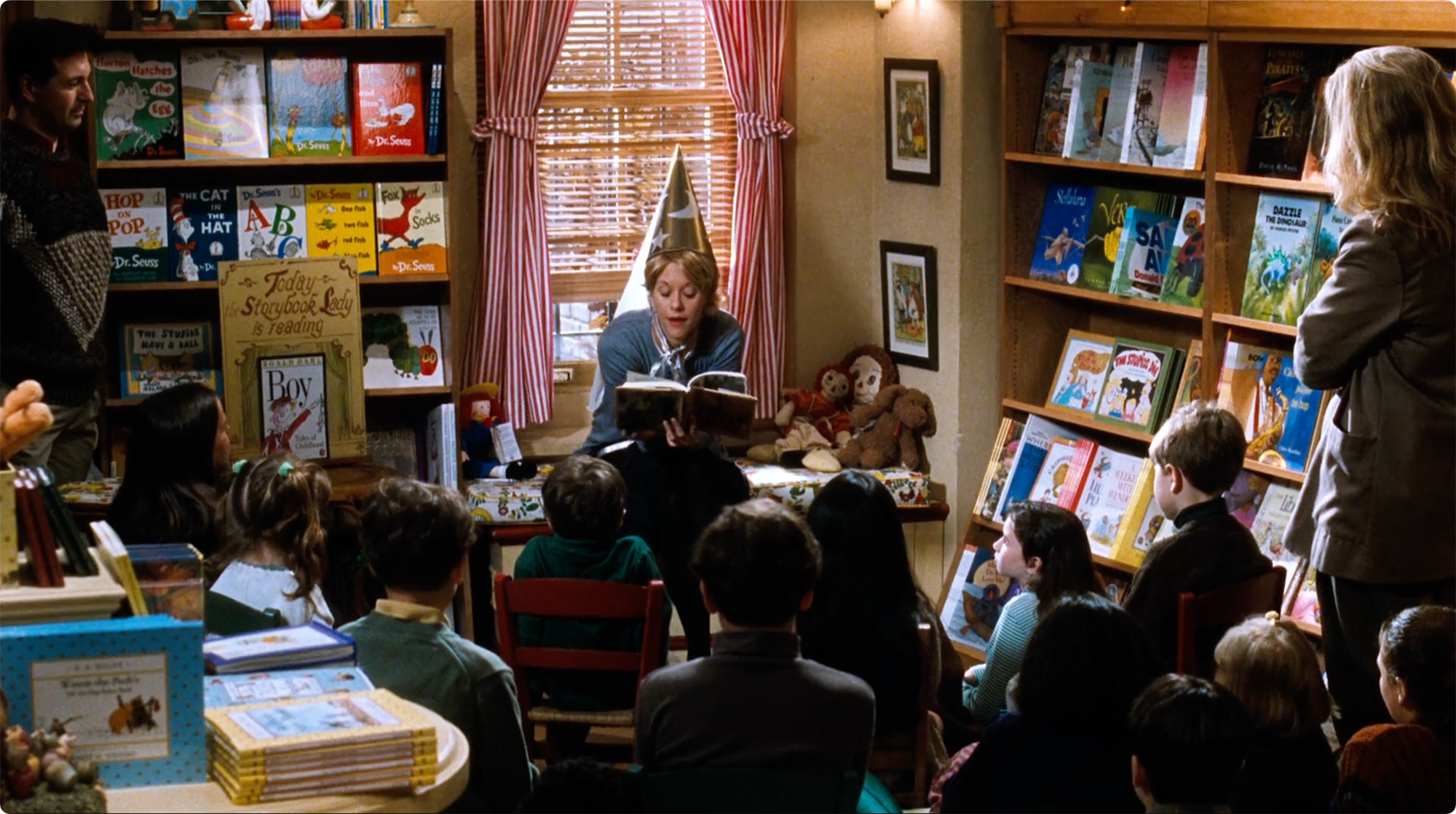 캐슬린(멕 라이언)은 작고 아늑한 동화책 전문서점 ‘더 숍 어라운드 더 코너’를 운영하는 주인입니다. 그녀는 어린 시절 어머니와 함께했던 가게를 지키며, 소박하고 진심 어린 관계를 추구하죠. 반면 조(톰 행크스)는 대형 서점 체인 ‘폭스 북스’의 경영자이자 거대한 자본의 상징입니다. 그는 인간적인 감성보다 효율과 확장을 중시하며, 냉철하게 업계를 지배해나갑니다.